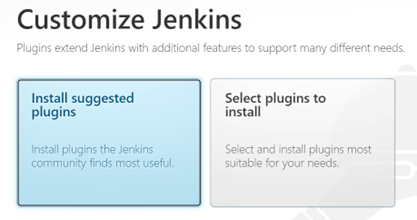 - On the Customize Jenkins dialog box, to have Jenkins automatically install the most frequently used plug-ins, click Install suggested plugins.