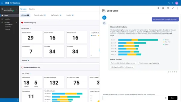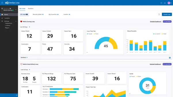Loops serve as the foundation of platform cohesion. Rather than treating each stage of the delivery pipeline as a separate activity, Loop aggregates data across the lifecycle to create a unified, intelligent feedback system within the DevOps lifecycle. - Get real-time visibility across your delivery lifecycle with Loop dashboards