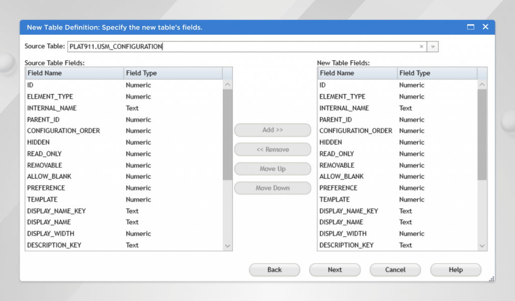 3.1 Select the Unica platform system table from the Source data source (Plat911)