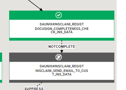 Further we have Conditional Dependencies from these Mail Intimation jobs also to mark the Claim as Registered in “COMPLETE” State which would only happen when both the Mailing Jobs go to SUPRESS State.