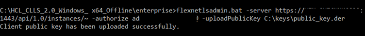 flexnetlsadmin.bat -server https://hostname:1443/api/1.0/instances/~ -authorize admin password -uploadPublicKey C:\keys\public_key.der